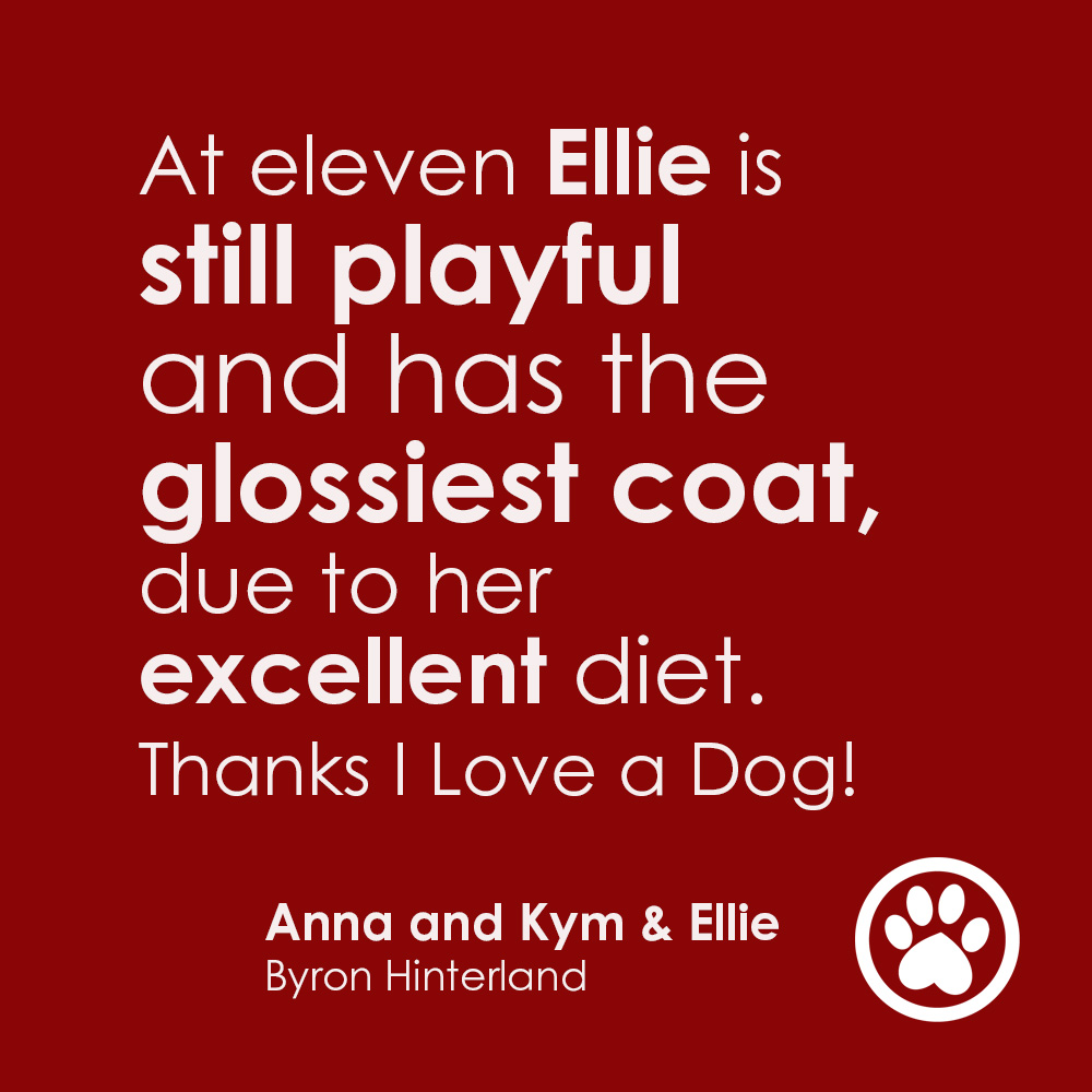 Both dogs lived happy lives, far longer than either prognosis, we believe from good management and diet. They left us in June and July 2020, 2 weeks apart in our arms ?. Their legacy lives on in our Staffy pup Ruger who also is fed all the same supplements from I Love a Dog.”