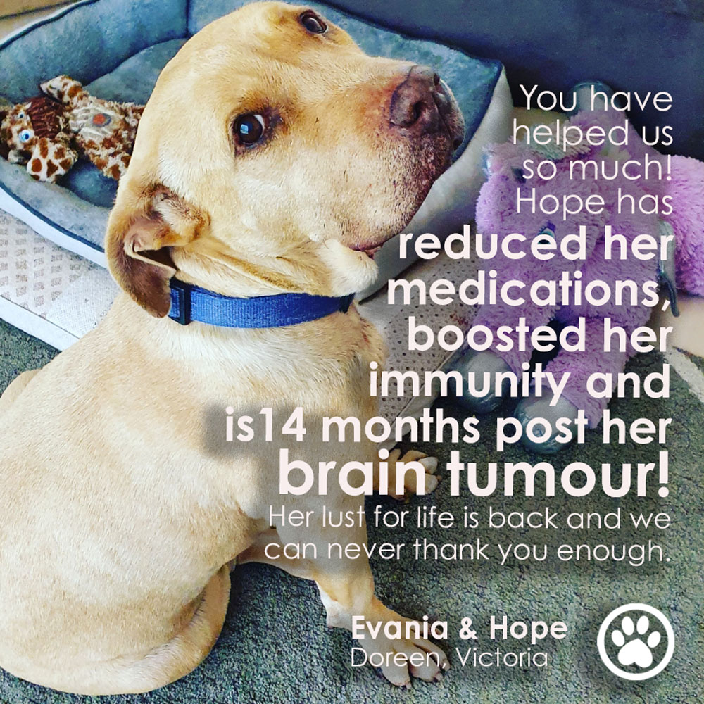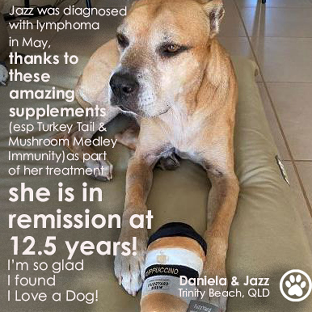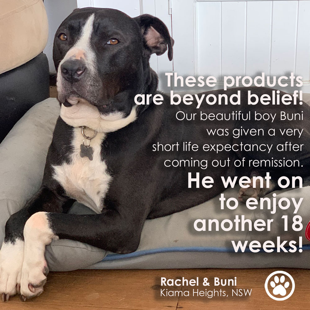 Thanks to Donna’s love, support, knowledge and wonderful products my terminally ill dog Pepperoni is not yet presenting symptoms of distress, discomfort or poor health, despite a visible tumour. The vet only gave her 6 weeks to live and that was almost 18 weeks ago. Everyday is a blessing and a bonus – but the products seem to have slowed the growth of the tumour and she looks great and seems to be feeling great. I am amazed and grateful far beyond words. I hope more people discover I Love A Dog and their wonderful products. Thank you xXx